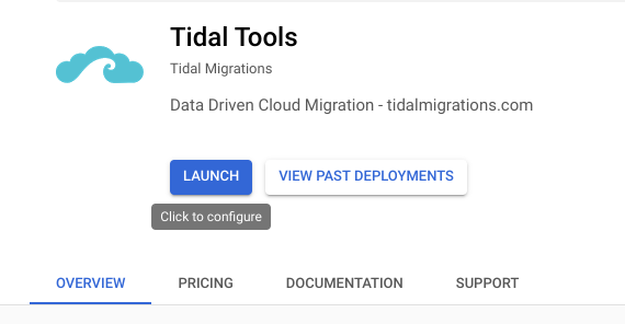 Starting at the Tidal Tools page in Google Cloud Marketplace, click the